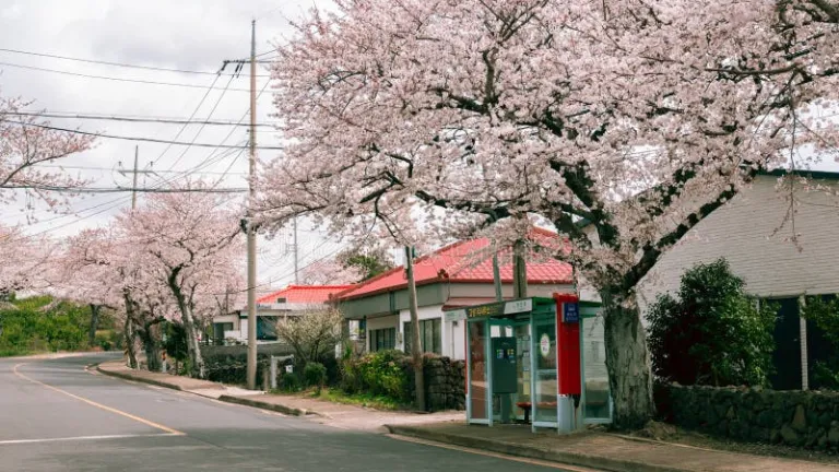 This historic site offers a unique, sacred atmosphere. Legend says it’s the birthplace of Jeju’s three founding gods. The cherry trees here grow toward a central cave, creating a picturesque scene framed by traditional Korean architecture.
