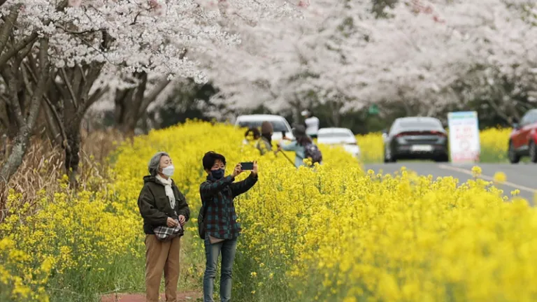 Looking for the best places to snap that perfect spring photo? Look no further! Jeju Island is the first place in South Korea to welcome the cherry blossoms each year. From late March to early April, the island transforms into a romantic paradise draped in soft pink and vibrant yellow canola flowers.