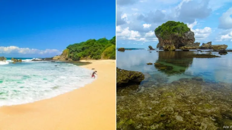 Pantai Jungwok is a hidden gem in Gunungkidul featuring a circular shoreline with pristine white sand. Camping here feels like having your own private beach. You can set up a small campfire (where permitted) in front of your tent, listen to the rhythmic tide, and stargaze under one of the clearest skies in the region. The morning sun rising from behind the large offshore rocks is a sight you won't soon forget.