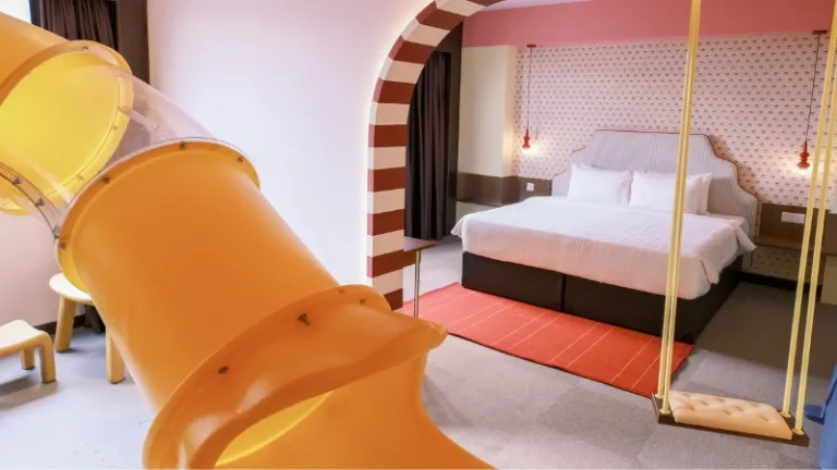 For families who love a splash of color, The Tres Hotel is an aesthetic gem with a playful retro design. Each room follows a unique concept, and even the smallest details—like the colorful slippers and mugs—are designed to spark joy. For those traveling with children, the "Family Den" room is a must.