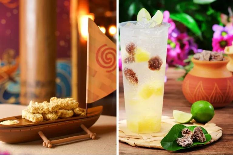 And of course, no Disney dining experience is complete without dessert and drinks. The signature sweet treat, called Explore the Ocean, features Banana Coconut Fritters dusted with cinnamon sugar, served with creamy coconut custard and desiccated coconut. To quench your thirst, there are refreshing non-alcoholic options like Island Delights and the tangy Preserved Plum Pineapple Soda.