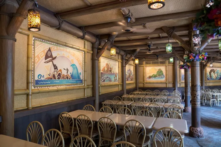 Wayfinders’ Table isn’t just another Disney restaurant — it’s a tribute to the spirit of voyaging and community. The space is inspired by the bai houses of Belau (Palau in Micronesia), which are traditionally built as gathering halls where stories are shared, decisions are made, and communities come together.