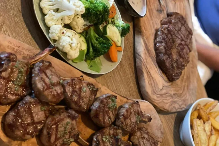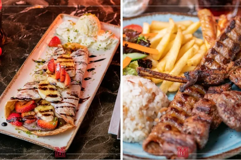 Infinity Steakhouse is known for premium halal steaks and modern European grills, including ribeye, sirloin, lamb chops, chicken fillets, and mixed grills. The restaurant combines a sleek interior with open kitchen views, letting diners watch their meals being prepared on the grill.