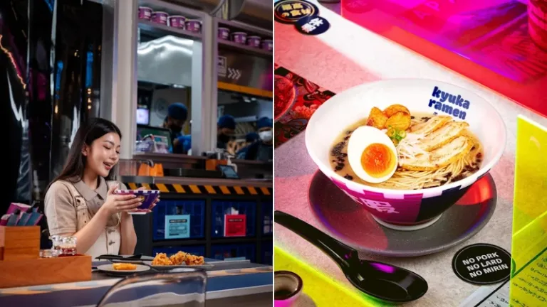 As one of the most reliable options in the area, Kyuka Ramen proudly holds an official Halal certification, making it a safe haven for Muslim diners. This restaurant specializes in rich, flavorful broths, particularly their Ninniku Kuro Ramen which uses a dense, creamy chicken-based soup and black garlic. Located conveniently inside Pasaraya Blok M, Kyuka Ramen offers a cool dining atmosphere, with neon lights and a futuristic factory-like interior. It’s a perfect spot for enjoying a warm, satisfying bowl of ramen.