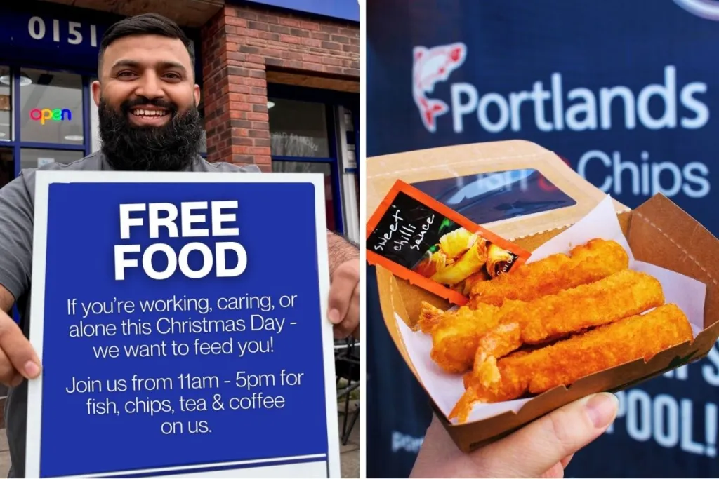 Portland’s Fish & Chips, located on Sefton Street in Brunswick, opened its doors on Christmas Day from 11 am to 5 pm for the second year in a row. Owner Mubinul Hoque and his dedicated team offered free hearty meals to those who needed them most, including NHS staff, carers, emergency workers, older members of the community, vulnerable individuals, and anyone spending Christmas alone.