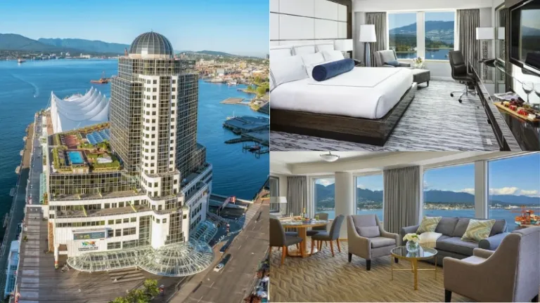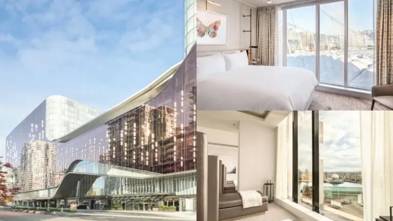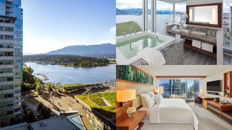 Located right in the heart of Vancouver’s entertainment district, this five star hotel is surrounded by trendy cafes and hidden gems. The highlight? The massive rooftop garden terrace. It’s a lush, green sanctuary where you can escape the sun and hang out. Plus, from the top floor, you get an incredible panoramic view of the Vancouver harbor that looks especially magical at sunset.