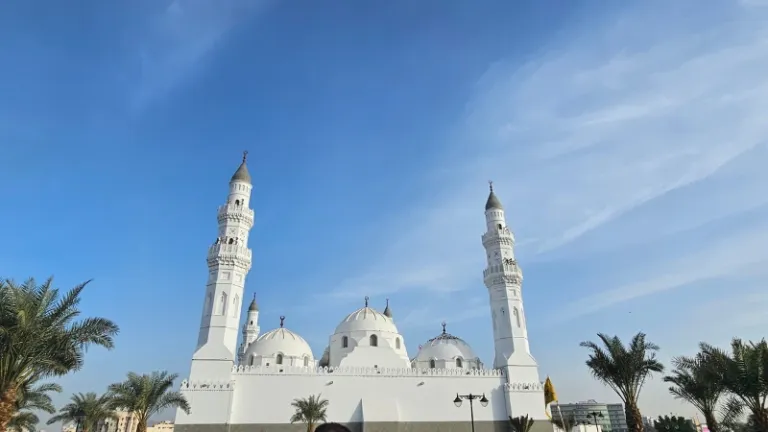 This blessed mosque holds the distinction of being the first mosque in Islamic history. It was built by Prophet Muhammad (SAW) immediately after his migration (Hijra) from Makkah to Madinah in 622 CE. According to Tirmidhi, the Prophet (SAW) is narrated to have said: “Whoever purifies himself in his house, then comes to this mosque (Quba’) and prays in it, he will have a reward like that of an ‘Umrah.”