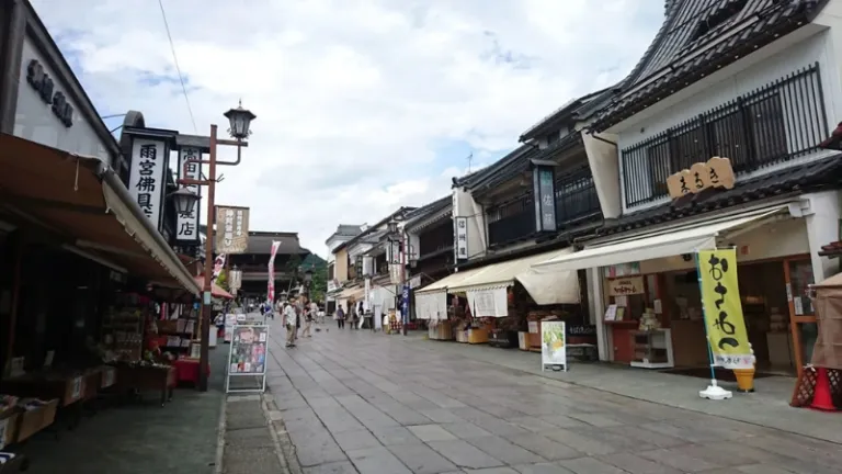 Before reaching the main hall of Zenko-ji Temple, you’ll walk through Nakamise Street. This stone-paved path is lined with traditional shops and food stalls. In winter, the scent of freshly grilled oyaki (Nagano’s signature dumplings) fills the air.