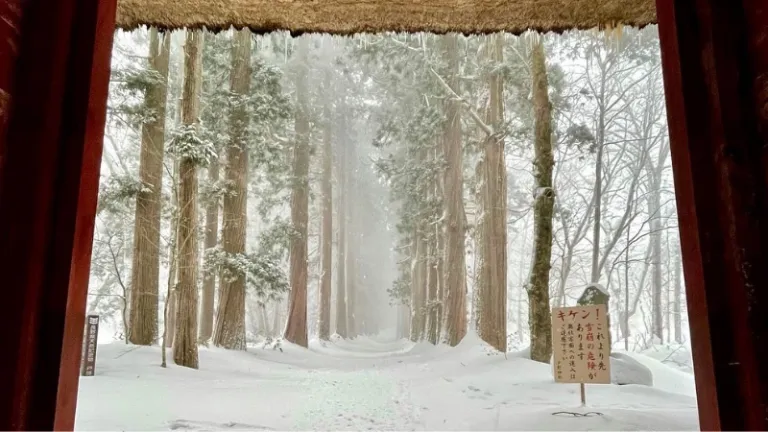 Togakushi is famous for its giant, 400-year-old cedar trees lining the path to Okusha, the upper shrine. In winter, the path is silent and buried in deep snow, making the walk feel incredibly spiritual.