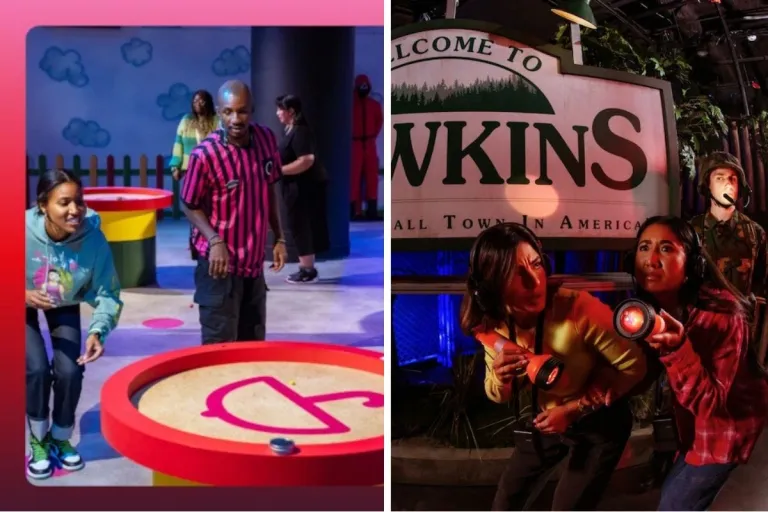 Stranger Things Upside Down Experience: Explore Hawkins, battle Demogorgons, or snap photos in the Byers’ living room, complete with the famous Christmas light alphabet wall.